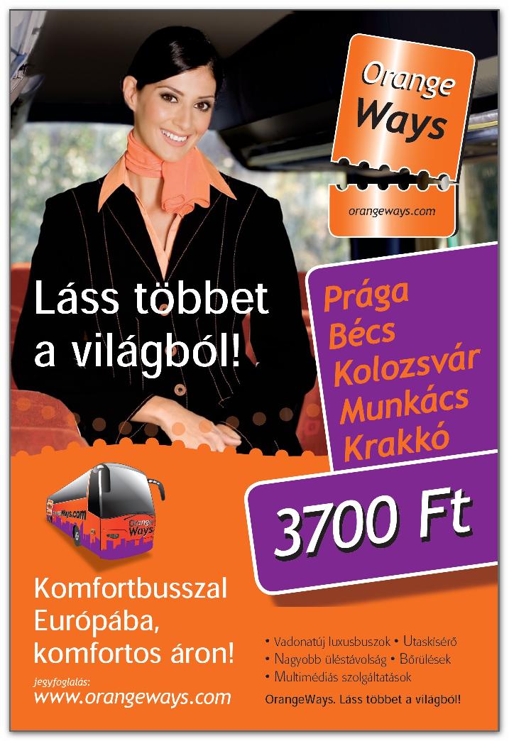 Az Orangeways Közlekedési Hálózatok Holding Nyrt. folytatja buszos szolgáltatásainak nemzetközi regionális expanzióját. A nemrég indult Budapest-Zágráb-Ljubljana és a tavasszal indított Budapest-Salzburg-München járat olyan hamar népszerűek lettek, hogy újabb desztinációk beindítása is várható. A célkeresztben Amszterdam és London útirányok is szerepelnek.